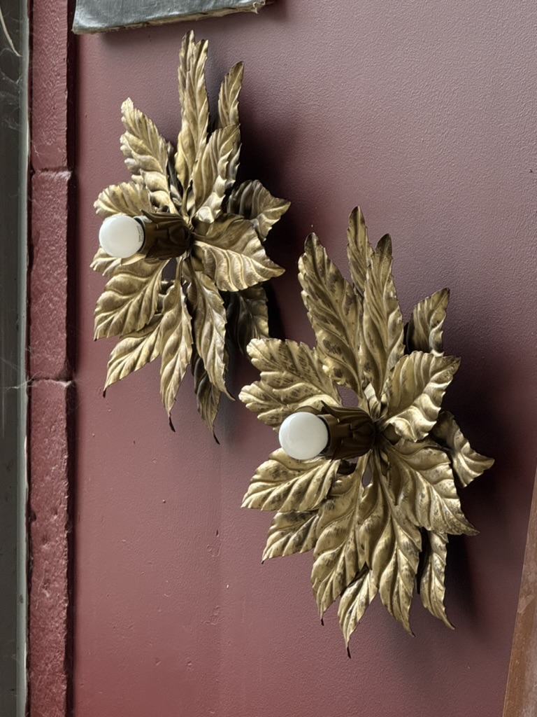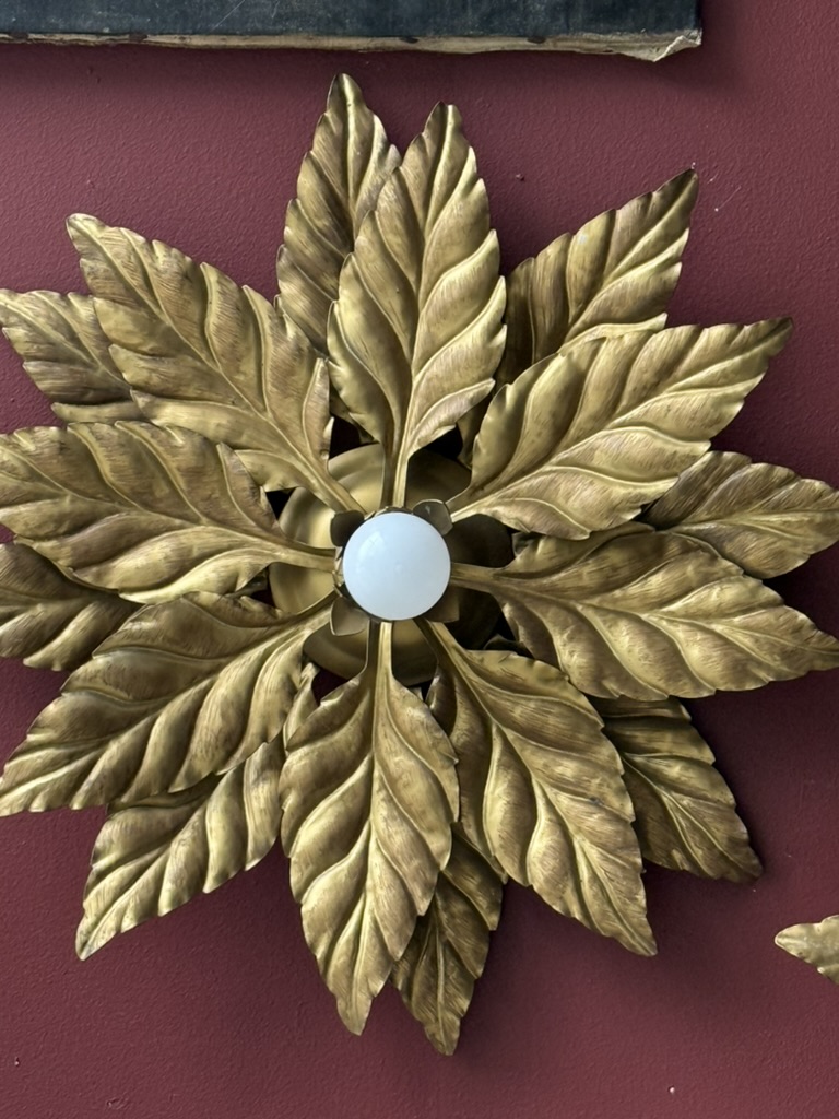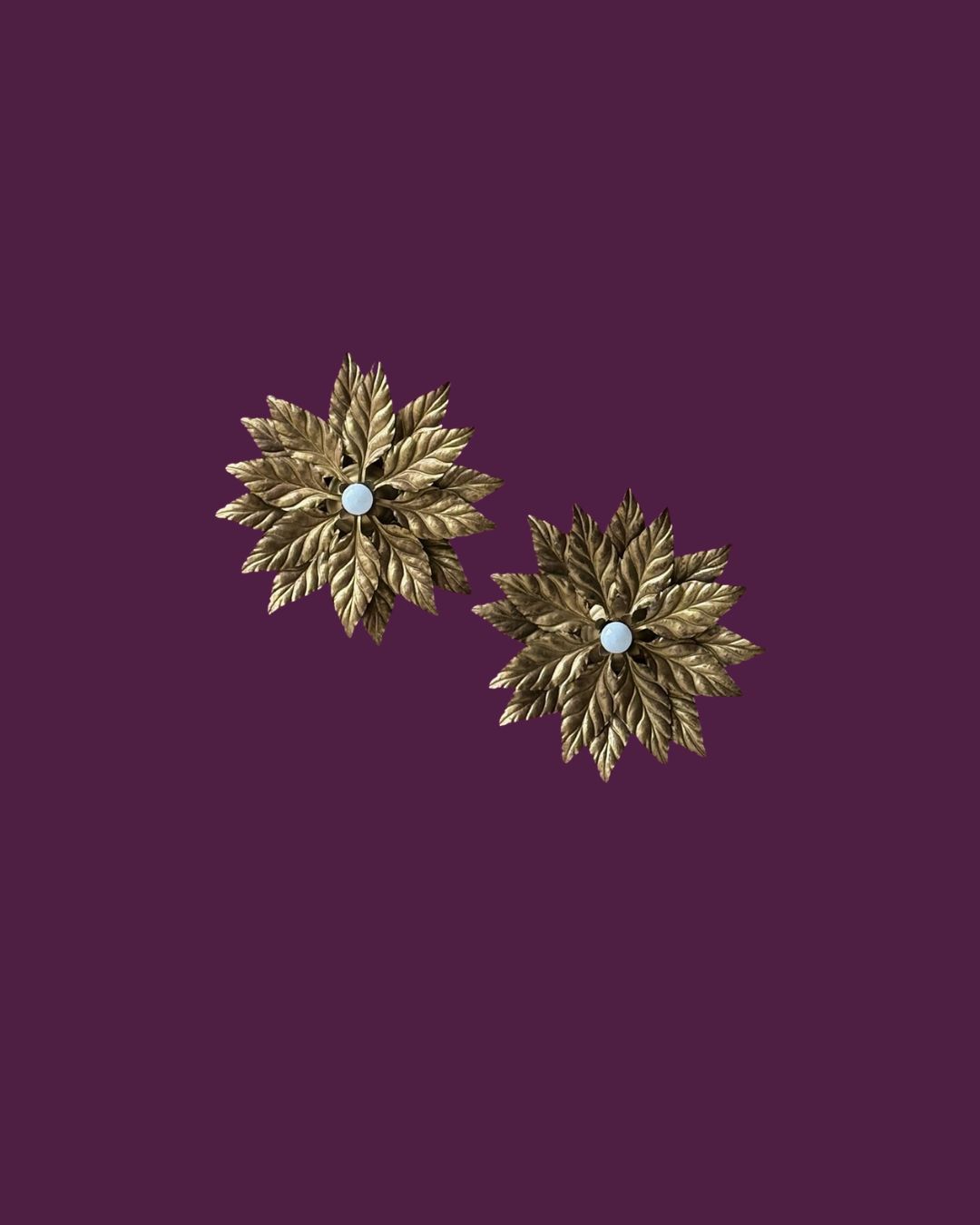 Paire d’appliques en métal doré, dans le goût de MASCA Italy. Diamètre 43 cm. Système électrique fonctionnel et aux normes, douilles culot E27.