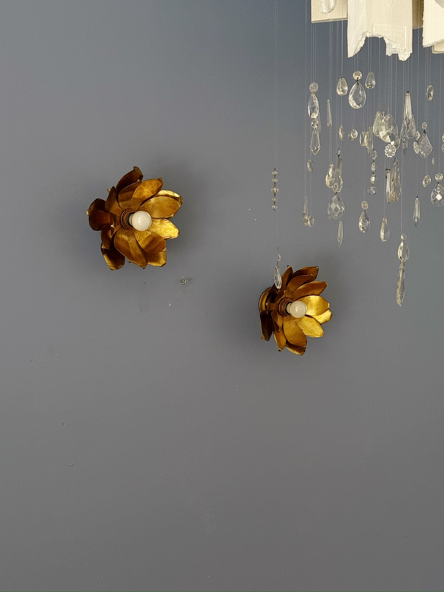 Belle paire d’appliques dans le goût des éditions MASCA, métal et feuille de cuivre. Parfait état. Hauteur : 22 cm.