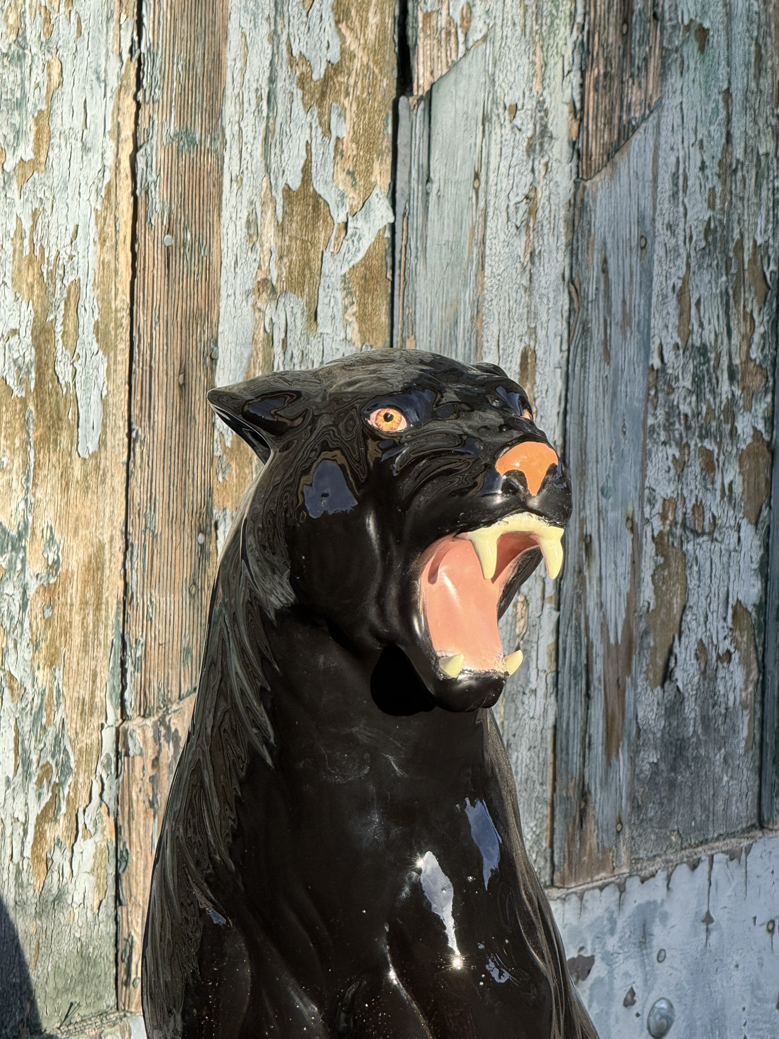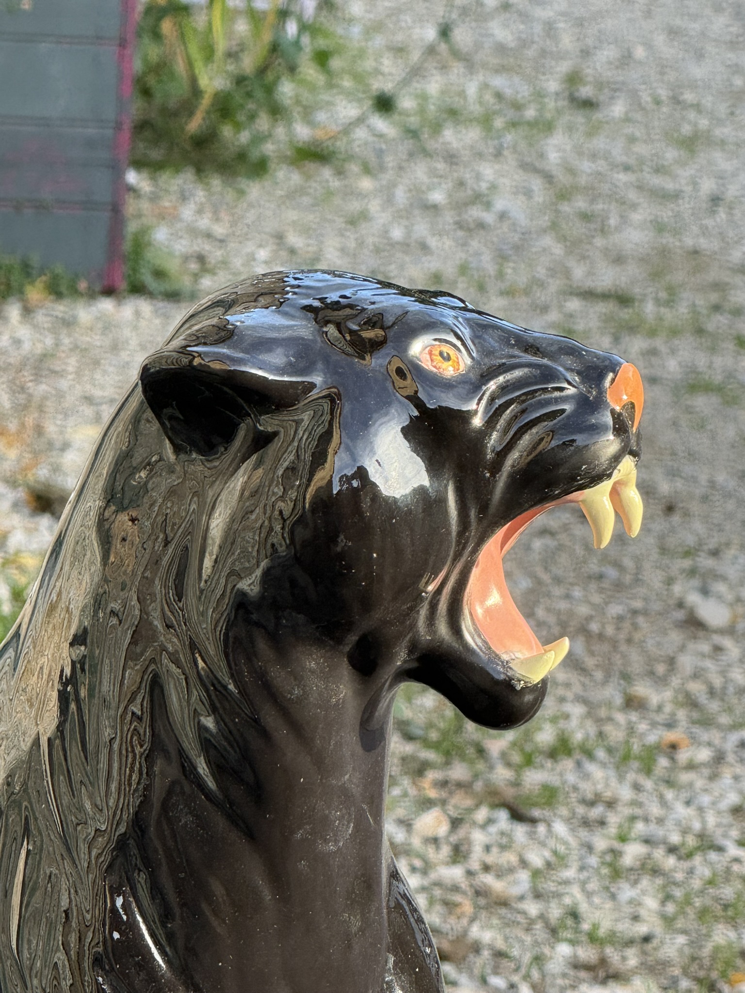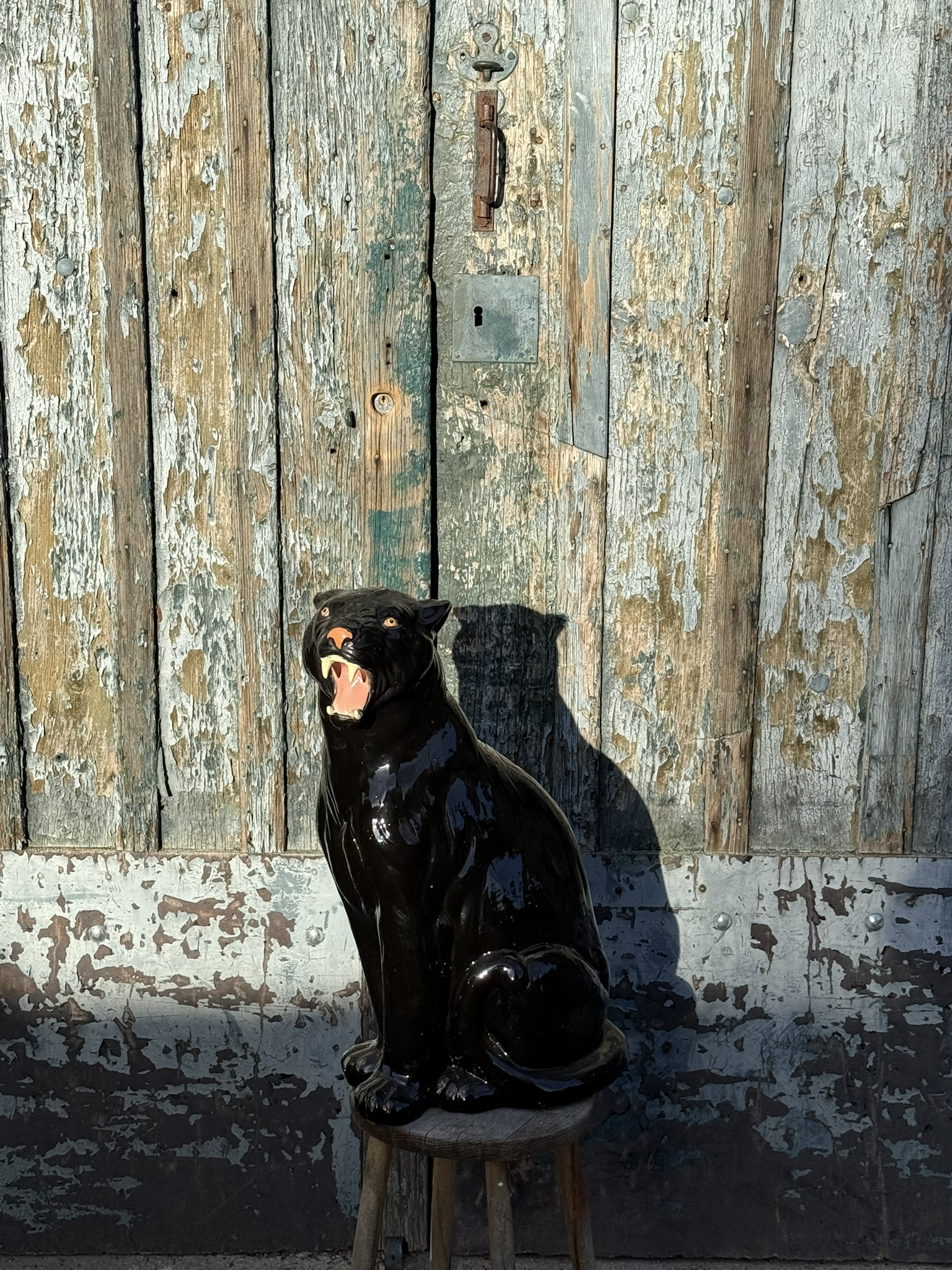 Panthère noire en terre cuite, parfait état. Hauteur : 56 cm.