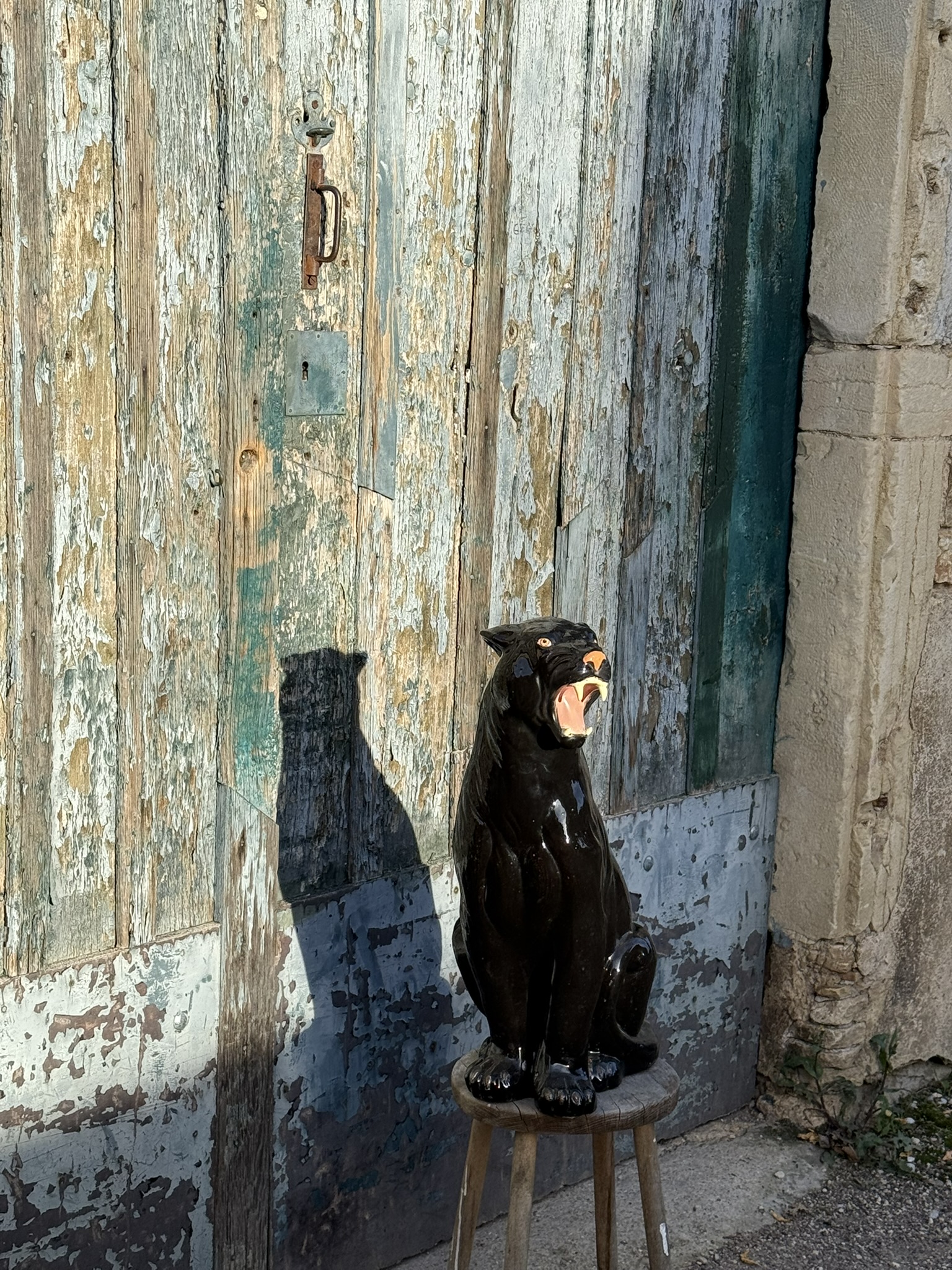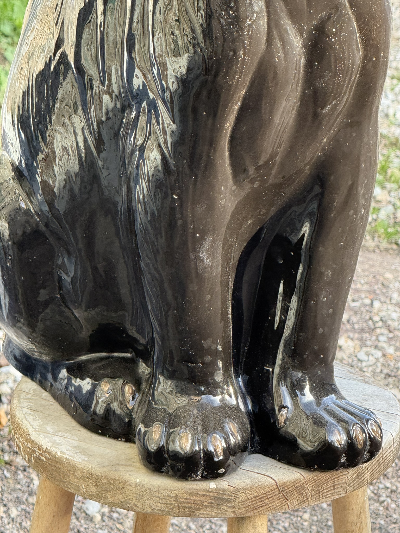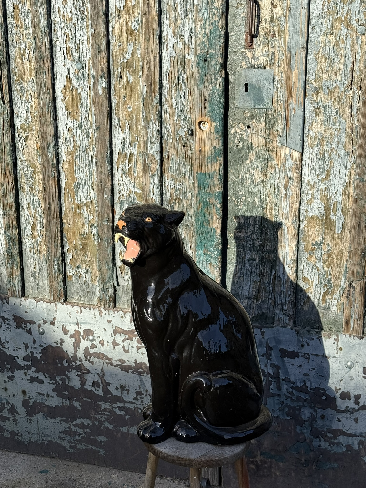 Panthère noire en terre cuite, parfait état. Hauteur : 56 cm.